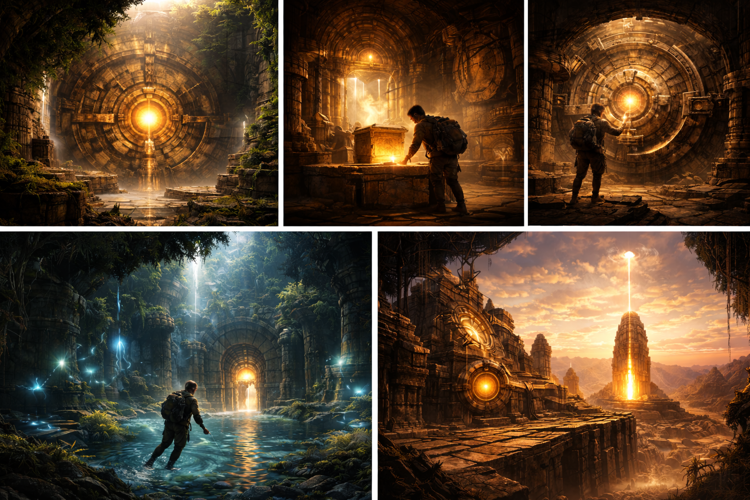Touch-based environmental puzzles, ancient mechanisms and layered realms with a grounded, premium aesthetic.